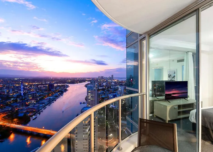 Das 2-Zimmer-Apartment High Floor - Chevron Renaissance - Self Contained & Privately Managed - Wow Stay Gold Coast liegt in etwa 3 km Entfernung vom Jachthafen Mariner's Cove und 450 Meter von einem familienfreundlichen Ort wie dem Timezone Surfers Paradise. Diese 140 m² großen Apartments bietet einen Jacuzzi, eine Sauna und ein Hallenbad an und liegt 5 Gehminuten von der Unendlichkeit entfernt.